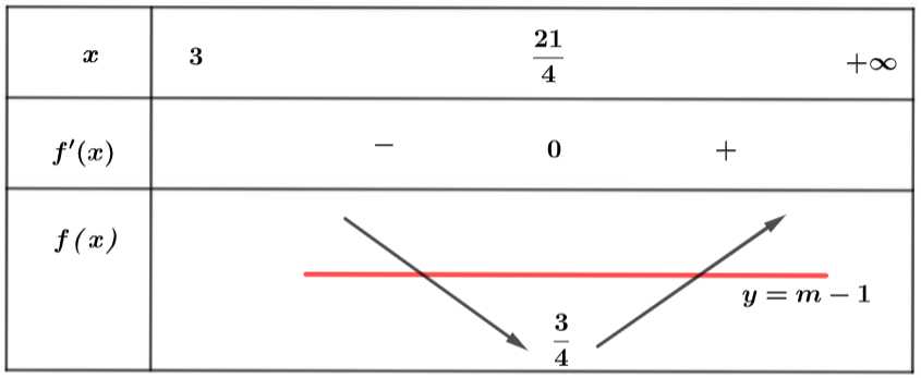 Dựa vào bảng biến thiên, suy ra để phương trình đã cho có đúng 2 nghiệm thực phân biệt khi và chỉ khi