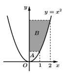 Khi đó, diện tích của hình phẳng được tô màu là A,