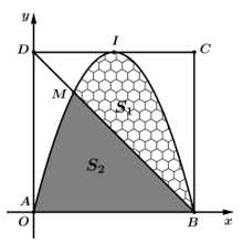 Câu 9 [1012163]: Điền số thích hợp vào chố trống. Biết rằng diện tích miền tô đậm trong hình vẽ bên bằng