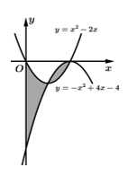 Hình bôi đậm là hình phẳng được giới hạn bởi các đồ thị hàm số