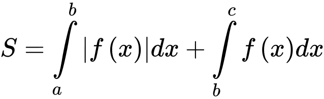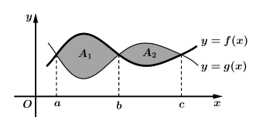 có đồ thị như hình vẽ. Diện tích mỗi miền được ghi bằng số trong hình. Tính