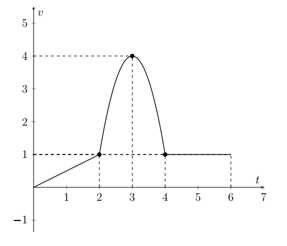 đơn vị là ki-lô-mét/giờ, là một hàm số phụ thuộc vào thời gian t được tính bằng giờ. Đồ thị của hàm vận tốc
