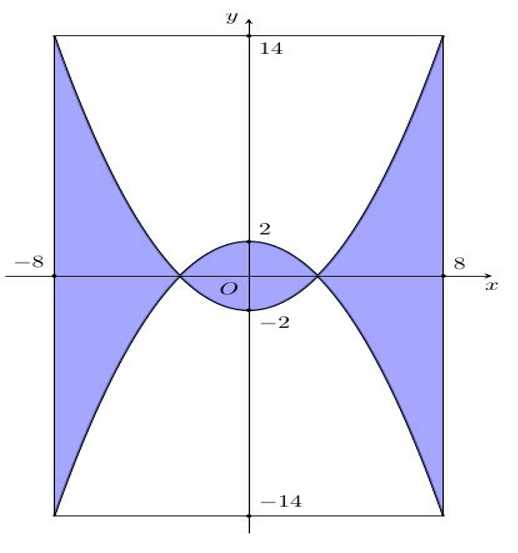 Câu 13 [1003441]: Bạn An thực hiện thiết kế một logo hình con mắt cho một phòng khám nhãn khoa. Logo là một hình phẳng giới hạn bởi hai parabol