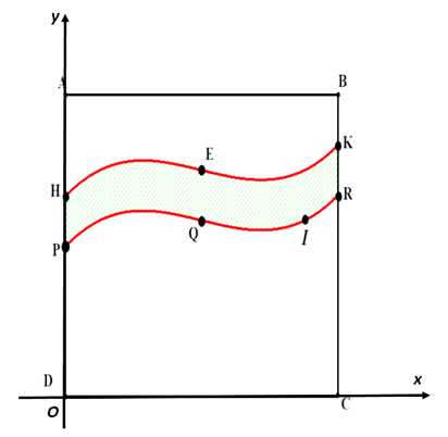 . Phần trung tâm của bảng sẽ được in nội dung quảng cáo, được mô tả là phần tô đậm (xem hình minh họa). Hai đường cong trong hình là một phần của đồ thị hàm số có dạng