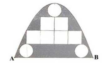 Câu 4 [696483]: Khu vực trung tâm một quảng trường có dạng hình tròn đường kính AB bằng 10 m. Người ta trang trí khu vực này bằng hai đường Parabol đối xứng nhau qua AB, nằm trong một hình tròn, hai parabol đi qua các điểm A, B và có đỉnh cách mép hình tròn 1m. Phần giới hạn bởi 2 parabol được trồng hoa với chi phí 200 nghìn đồng 1 mét vuông, phần còn lại được lát gốm sứ với chi phí 800 nghìn đồng 1 mét vuông. Để tính toán chi phí người ta gắn vườn hoa vào hệ trục tọa độ