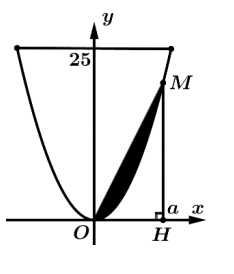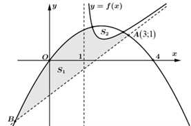 là phần diện tích được giới hạn bởi nhánh phải của đồ thị với parabol như hình vẽ. Biết rằng giá trị