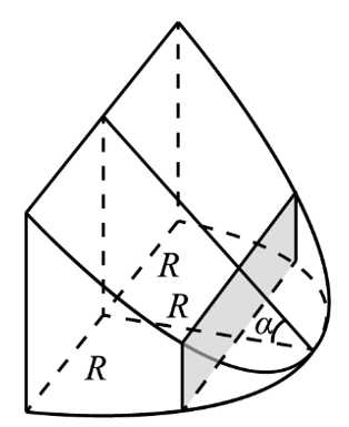 đang đựng một lượng nước. Bạn A nghiêng cốc nước, vừa lúc khi nước chạm miệng cốc thì ở đáy mực nước trùng với đường kính đáy. Thể tích lượng nước trong cốc là bao nhiêu cm^3.