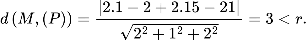 b) Ta có khoảng cách từ tâm đến mặt phẳng là