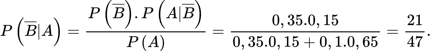 Câu 7 [145260]: [Trích SGK Cùng Khám Phá]: Kết quả khảo sát tại một xã cho thấy có 20% cư dân hút thuốc lá. Tỉ lệ cư dân thường xuyên gặp các vấn đề sức khoẻ về đường hô hấp trong số những người hút thuốc lá và không hút thuốc lá lần lượt là 70% và 15%. Nếu ta gặp một cư dân của xã thường xuyên gặp các vấn đề sức khoẻ về đường hô hấp thì xác suất người đó có hút thuốc lá là khoảng bao nhiêu phần trăm?