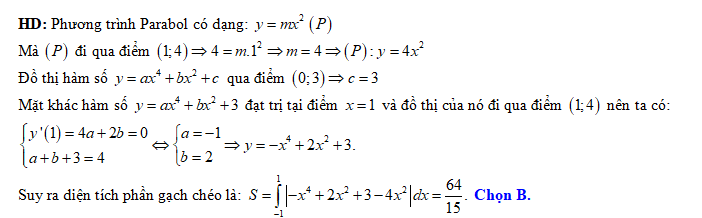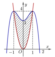 (tham khảo hình vẽ). Hình phẳng giới hạn bởi hai đồ thị đã cho có diện tích bằng