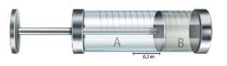 Câu 43 [1026242]: Một xi lanh có pit-tông cách nhiệt và nằm ngang. Pit-tông chia xi lanh thành hai phần. Truyền nhiệt lượng 100 J cho khí bên ngăn A thì pit-tông chuyển động đều một đoạn d = 0,2 m về phía ngăn B. Biết lực ma sát giữa xi lanh và pit-tông là 16 N.