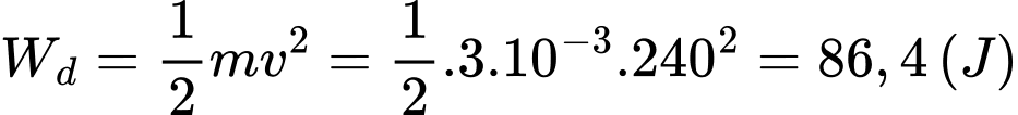 Câu 42 [680280]: Một viên đạn bằng chỉ có khối lượng 3 g đang bay với tốc độ 240 m/s thì cắm ngập vào một tấm gỗ dày. Nếu có 50% cơ năng viên đạn chuyển thành nội năng của nó thì nội năng viên đạn tăng bao nhiêu J? (kết quả ở dạng thập phân, lấy một chữ số sau dấu phẩy)
