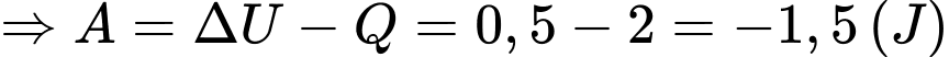 Khối khí nhận một nhiệt lượng 2J và nội năng của khí tăng thêm 0,5J.