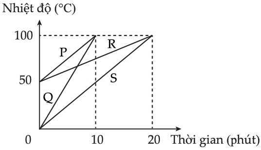 Câu 5 [135977]: Có 4 bình A, B, C, D đều đựng nước ở cùng một nhiệt độ với thể tích tương ứng là: 1 lít, 2 lít, 3 lít, 4 lít. Sau khi dùng các đèn cồn giống hệt nhau để đun các bình này khác nhau. Hỏi bình nào có nhiệt độ thấp nhất?