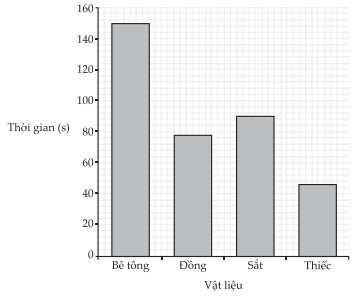 Học sinh đã đo thời gian cần thiết để tăng nhiệt độ của mỗi vật liệu lên thêm 5 °C. Kết quả học sinh đo được thể hiện ở hình dưới đây.