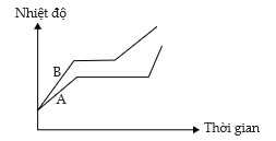 Chất A cần cung cấp nhiều nhiệt lượng hơn chất B để nóng chảy hoàn toàn ở nhiệt độ nóng chảy. Do đó chất A có nhiệt nóng chảy riêng cao hơn chất B.
