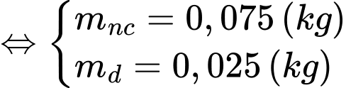 => Khối lượng hỗn hợp bằng 0,5 + 0,68 = 1,18kg