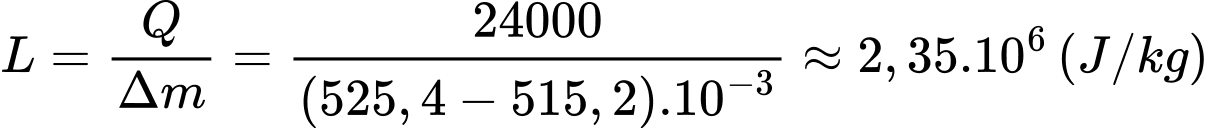 Nhiệt hóa hơi riêng của nước có giá trị là