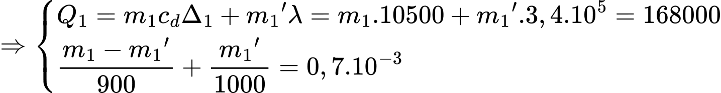 => đá tiếp tục nhận nhiệt lượng để hóa lỏng 1 phầnCoi m1 là khối lượng nước đá ban đầu, m1’ là khối lượng nước đá hóa lỏng