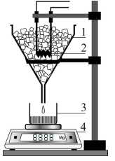 Câu 20 [1027859]: Một nhóm học sinh thảo luận phương án thí nghiệm làm giảm ảnh hưởng của sự trao đổi nhiệt với môi trường khi đo nhiệt nóng chảy riêng của nước đá. Họ dùng các dụng cụ: Phẫu chứa nước đá (1), dây điện trở (2), cốc (3), cân điện tử (4) như hình bên.