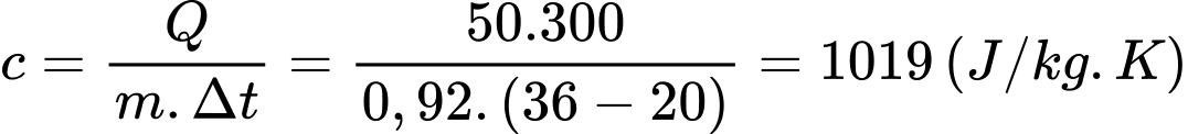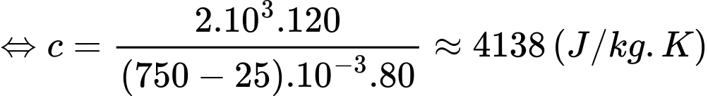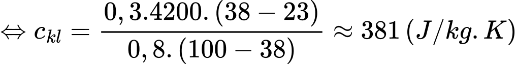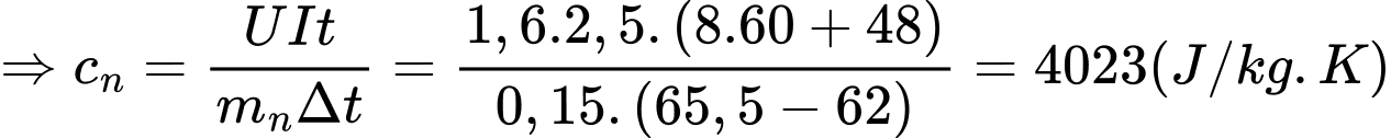• Nhiệt dung riêng của nước = 4200 J/(kg.K)