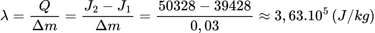 • Nhiệt hóa hơi riêng của nước = 2,26 × 10⁶ J/kg