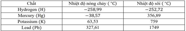 Khi nhiệt độ môi trường là 30 °C, chất nào ở thể lỏng?
