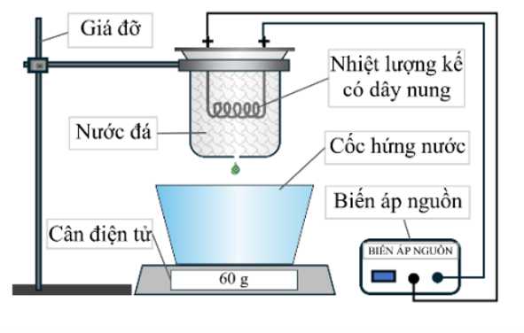 Một học sinh làm thí nghiệm xác định nhiệt nóng chảy riêng của nước đá với bộ dụng cụ gồm: Biến áp nguồn; nhiệt lượng kế