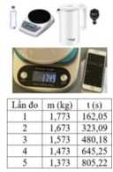 - Đọc số chỉ của cân ở các thời điểm khác nhau theo thời gian. Biết ấm có công suất