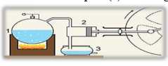 Câu 13 [1028860]: Động cơ hơi nước gồm ba bộ phận chính như hình vẽ: nồi súp de (1), hệ thống xi-lanh và pittông (2) và bình ngưng hơi (3). Nồi súp de (1) có tác dụng
