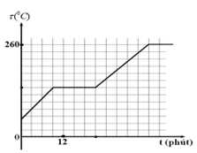 Câu 22 [1028869]: Một học sinh làm thí nghiệm đun nóng chất X trên bếp điện và vẽ được đồ thị biểu diễn sự phụ thuộc nhiệt độ