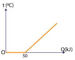 Câu 27 [1028874]: Một hỗn hợp gồm nước và nước đá có nhiệt độ 0 °C. Khối lượng hỗn hợp là 10 kg. Người ta tiến hành thực hiện đo nhiệt độ của hỗn hợp. Đồ thị phụ thuộc nhiệt độ vào thời nhiệt lượng cung cấp cho hỗn hợp được cho bởi hình bên. Biết nhiệt nóng chảy riêng của nước đá