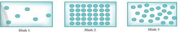 lần lượt là mật độ phân tử của một chất (không phải là nước) ở thể rắn, thể lỏng và thể khí. Thứ tự đúng là