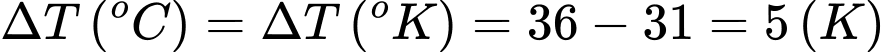 Độ tăng nhiệt độ theo thang Celsius bằng độ tăng nhiệt độ theo thang Kelvin nên ta có