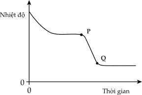 Một chất mất năng lượng nhiệt ra môi trường xung quanh với tốc độ ổn định. Đồ thị cho thấy nhiệt độ của chất thay đổi theo thời gian. Đoạn PQ trên đồ thị biểu diễn quá trình giảm nhiệt độ ở thể lỏng của chất.