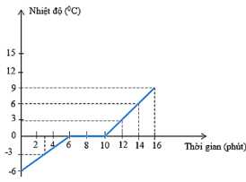 Câu 41 [682647]: Thời gian để vật tăng nhiệt độ từ khi nóng chảy hoàn toàn tới 9 °C là bao nhiêu phút?