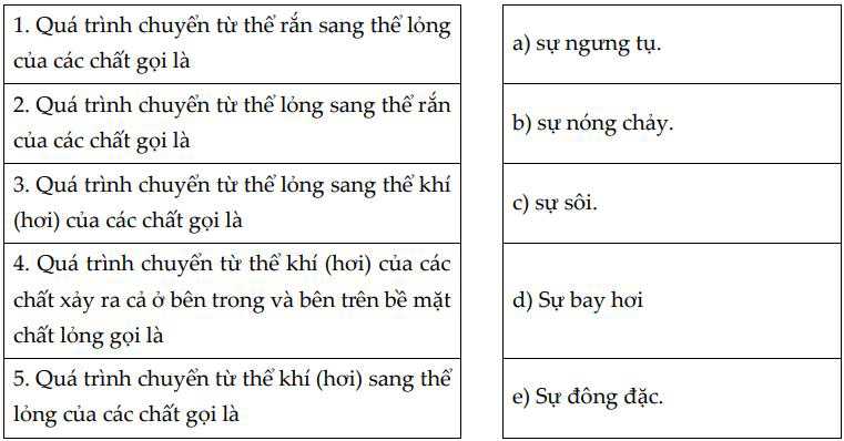 5-a Quá trình chuyển từ thể khí (hơi) sang thể lỏng của các chất gọi là sự ngưng tụ.