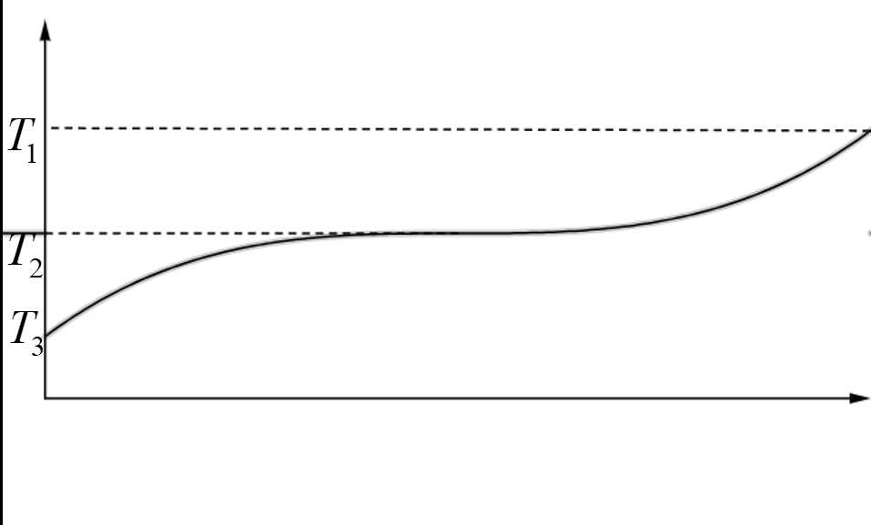 Đun nóng một vật rắn ta thu được đồ thị của nhiệt độ vật theo thời gian cho bởi đồ thị hình dưới.