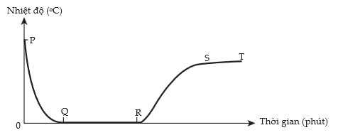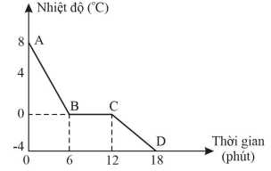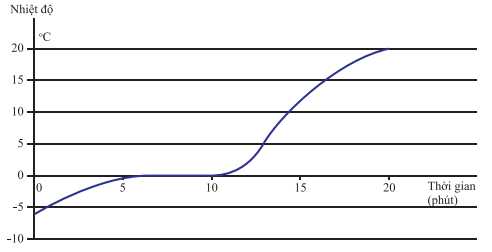 Cho đồ thị biểu diễn sự thay đổi nhiệt độ theo thời gian của nước đá như hình vẽ.