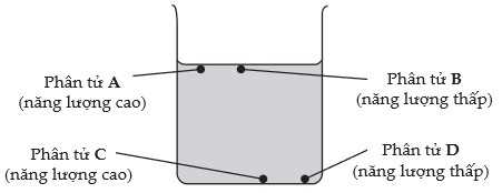 Chọn A vì phân tử A có năng lượng cao và nằm trên bề mặt chất lỏng nên có khả năng thoát ra khỏi chất lỏng là lớn nhất. Đáp án: A