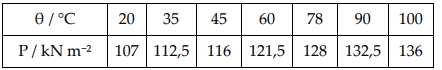 Sử dụng tỷ lệ 2 cm biểu diễn 10 kN m⁻² và 1 cm biểu diễn 10 °C, hãy vẽ đồ thị của P