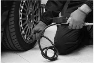 Câu 60 [1028885]: Bức ảnh cho thấy một thợ máy bơm không khí vào lốp ô tô.