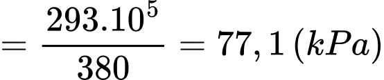 Câu 53 [153006]: Một bình hình trụ đặt thẳng đứng có thể tích không đổi. Trong bình chứa khí ở nhiệt độ 107oC dưới áp suất 105 Pa. Khi nhiệt độ trong bình giảm xuống còn 20oC thì áp suất trong bình là bao nhiêu kPa? (kết quả để dạng thập phân làm tròn đến một chữ số sau dấu phẩy)
