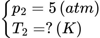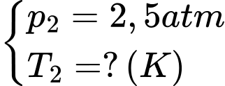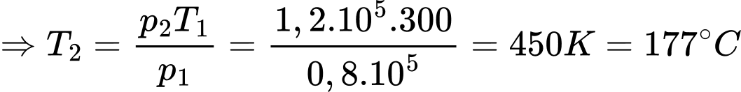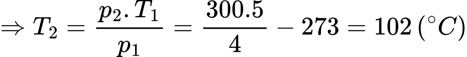 Câu 54 [153007]: Một bình chứa khí ở 27°C dưới áp suất 4 atm có dung tích không đổi. Nếu áp suất khi tăng thêm 1 atm thì nhiệt độ khi trong bình là bao nhiêu oC.