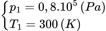 b. Pit-tông được đẩy vào để thể tích không khí trong xi lanh giảm một nửa. Nhiệt độ của lượng khí không đổi. Xác định áp suất đo được trên đồng hồ khi đó.