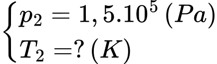Câu 57 [1028883]: Một xi lanh có pit-tông kín, bên trong có 20 cm3 không khí ở 27 oC, áp suất 1 atm. Người ta truyền nhiệt cho khối khí theo hai giai đoạn: ban đầu, thả pittông tự do để khối khí giãn đẳng áp đến thể tích 30 cm3; sau đó cố định pit-tông đến khi áp suất của khí trong xi lanh bằng 1,2 atm thì dừng lại. Nhiệt độ cuối cùng của khối khí trong xi lanh bằng bao nhiêu oC?