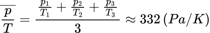 Tỉ số p/T có giá trị trung bình xấp xỉ (làm tròn đến phần nguyên) bằng bao nhiêu Pa/K?