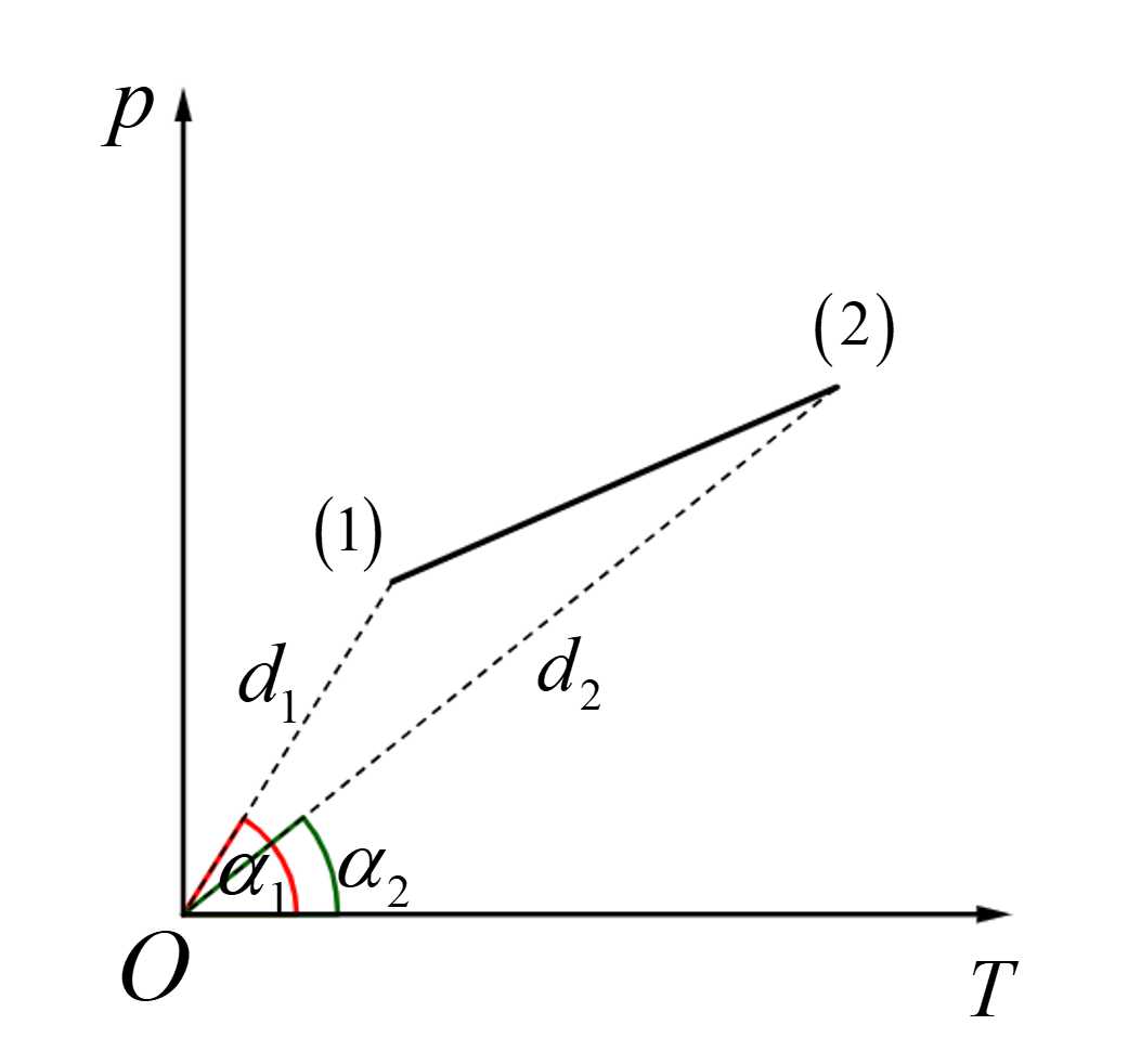 Quá trình biến đổi từ trạng thái (1) sang trạng thái (2) là đường tuyến tính đi qua gốc tọa độ, đây là quá trình biến đổi đẳng áp.