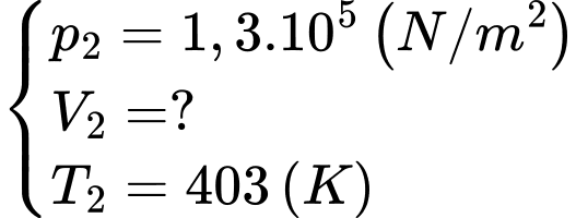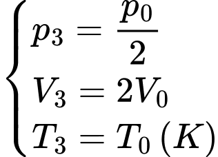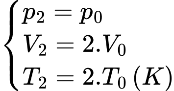 Nhiệt độ của khối khí ở trạng thái 2 bằng bao nhiêu theo thang Kelvin (K)? Kết quả làm tròn đến phần nguyên.