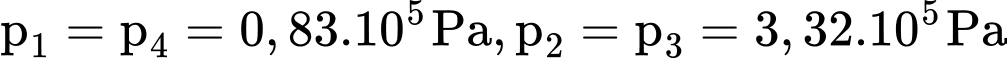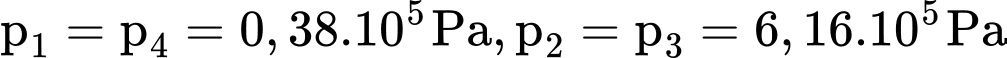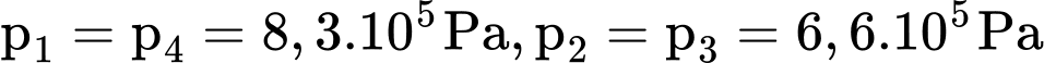 (hình vẽ). Biết T1 = T2 = 400 K, T3 = T4 = 200 K , V1 = 40 dm3, V2 = 10 dm3. p1, p2, p3, p4 lần lượt nhận các giá trị sau?